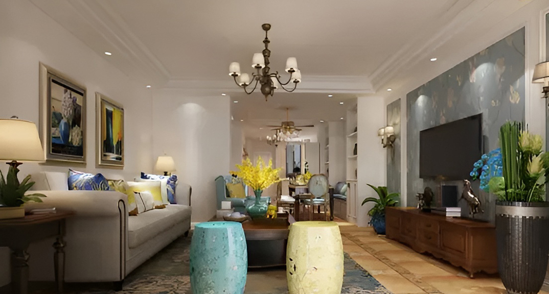 青島小鎮(zhèn)平層105平方三居室美式田園風(fēng)格設(shè)計(jì)案例