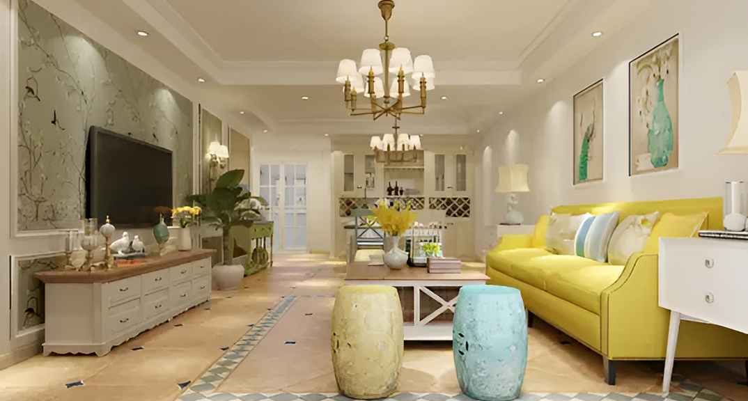青島小鎮(zhèn)平層105平方三居室美式田園風(fēng)格設(shè)計(jì)案例