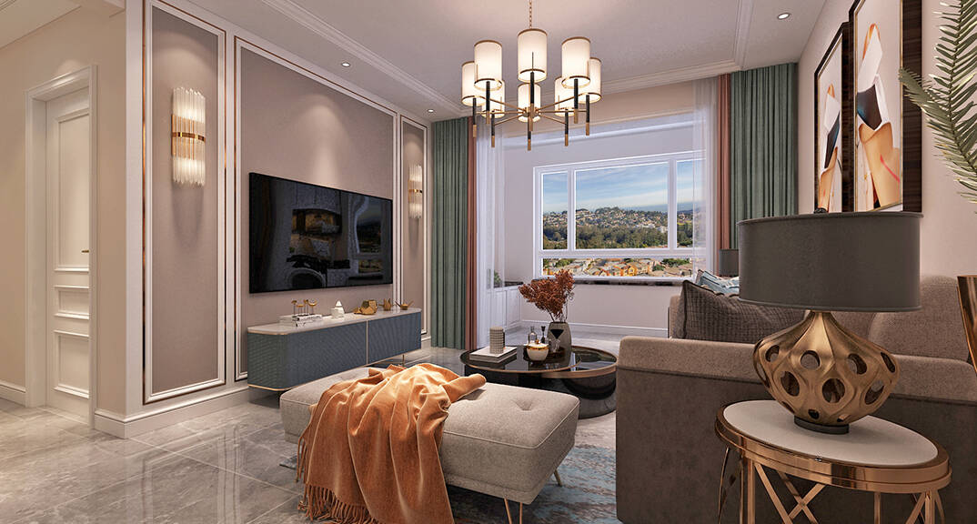 中南世紀(jì)城110m2簡(jiǎn)歐風(fēng)格-客廳效果圖