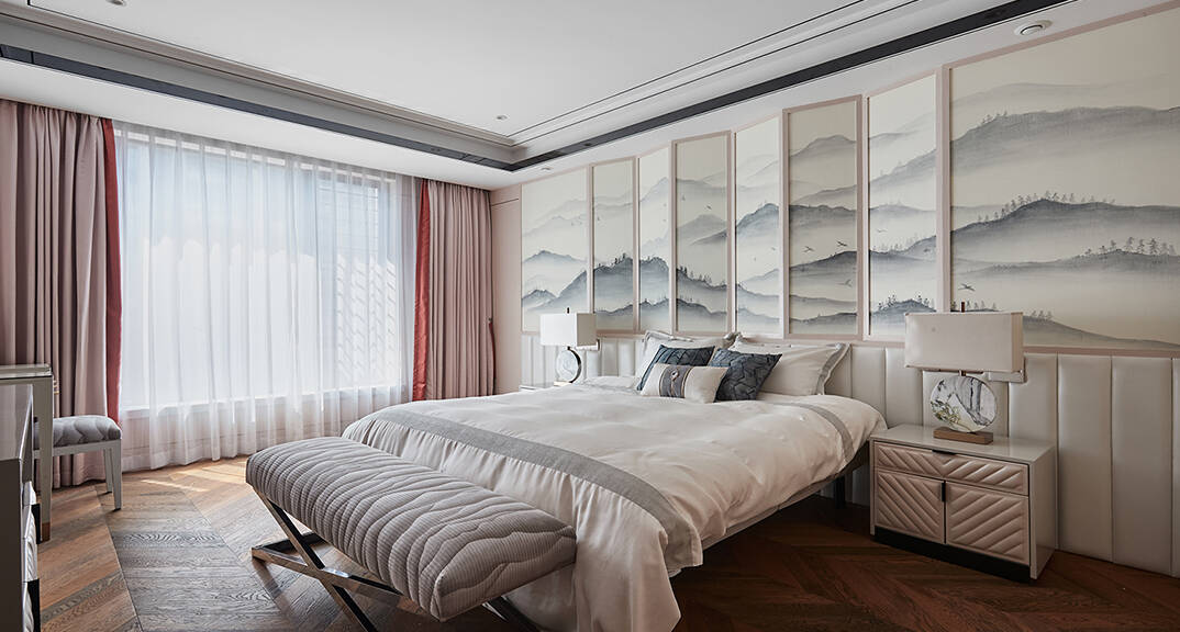 恒大·金沙灘 320㎡ 別墅 新中式風(fēng)格臥室裝修效果圖