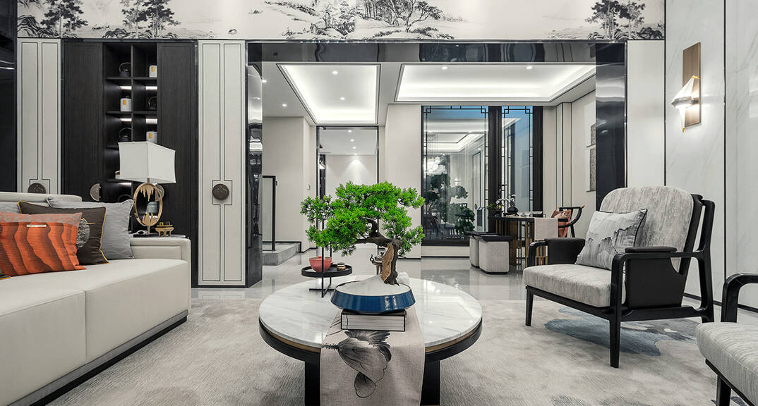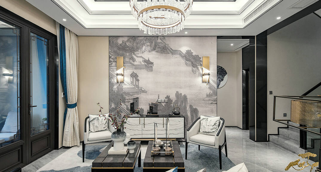 萊西天泰壹號(hào)別墅 320平 客廳新中式風(fēng)格裝修效果圖