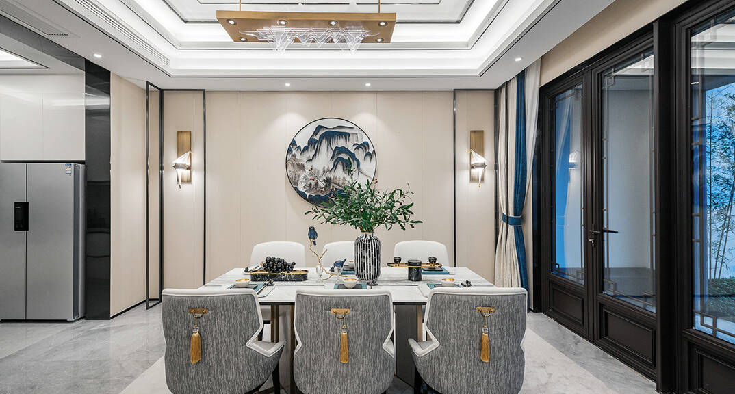 萊西天泰壹號(hào)別墅 320平 餐廳新中式風(fēng)格裝修效果圖
