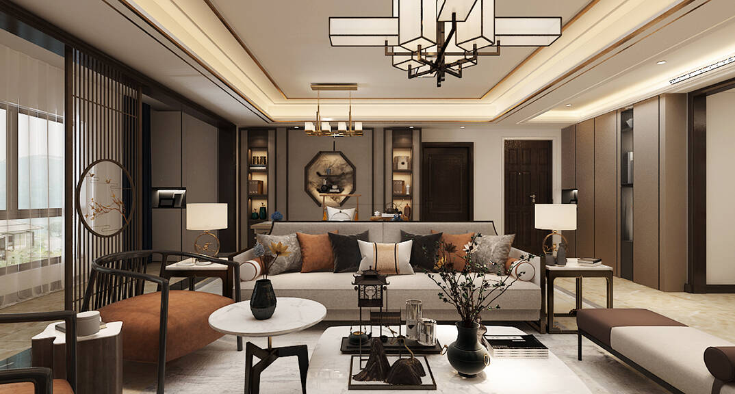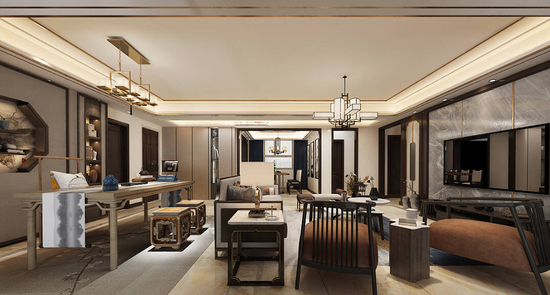 紫悅府173m2新中式風(fēng)格-客廳效果圖