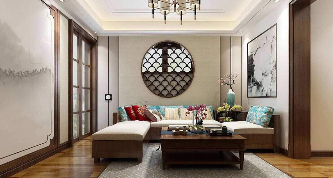 珠海路150m2新中式風(fēng)格-客廳一角效果圖