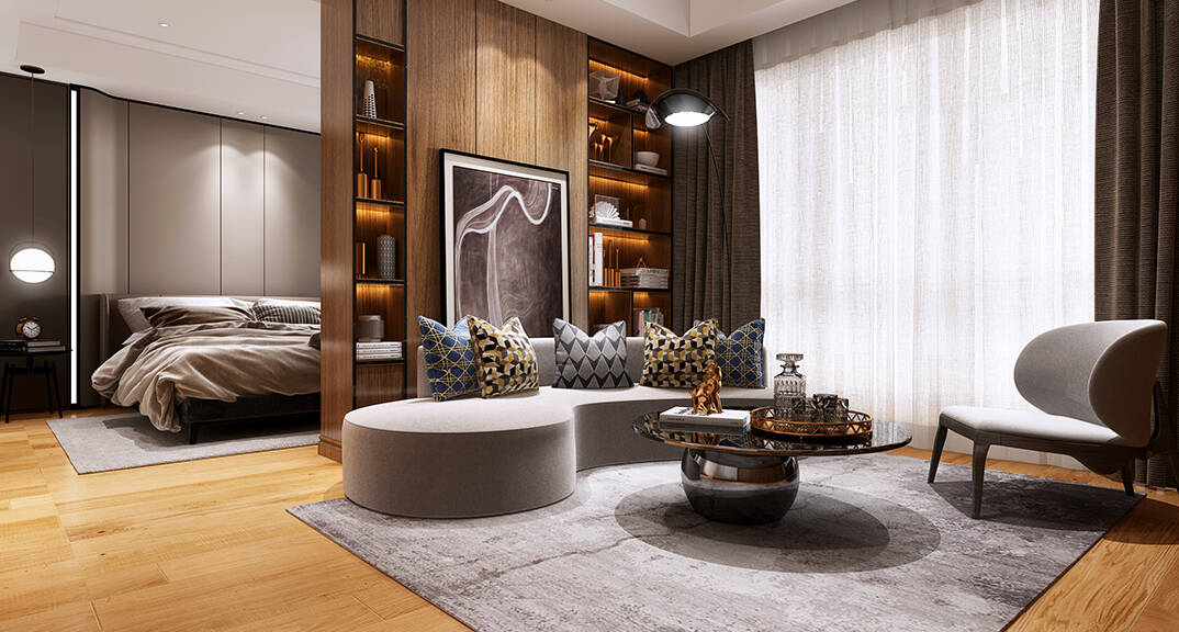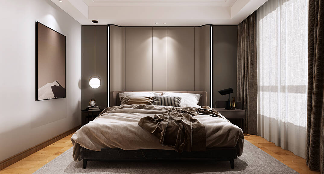 本案設(shè)計(jì)風(fēng)格為意式輕奢,拒絕了濃烈的色彩,以一種簡(jiǎn)單、純粹的設(shè)計(jì)語言,回歸生活的本質(zhì),留存給居住者更多生活想象的空間。 整體空間灰橙色、駝色、與淺暖灰色調(diào)展現(xiàn)輕奢低調(diào)的高級(jí)質(zhì)感,簡(jiǎn)約時(shí)尚的家具又增添了一份現(xiàn)代感,重新梳理了空間功能和尺寸,客廳陽臺(tái)一體化設(shè)計(jì),最大限度引入自然光,高級(jí)灰搭配中性色系木飾面,打造一個(gè)舒適的高品質(zhì)空間。在空間設(shè)計(jì)與色彩配搭上,精準(zhǔn)地把控節(jié)奏,用設(shè)計(jì)表達(dá)空間的包容性,更多的是通過人性化思考,創(chuàng)造一個(gè)功能性完整的舒適生活空間。大塊的木飾面、金屬元素和燈 光的碰撞搭配,凸顯出強(qiáng)大張力,共同打造出意式輕奢腔調(diào)十足的時(shí)尚與質(zhì)感。
