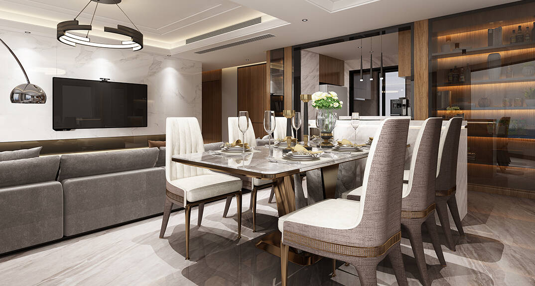 燕島國(guó)際270㎡四室兩廳餐廳現(xiàn)代風(fēng)格裝修案例效果圖