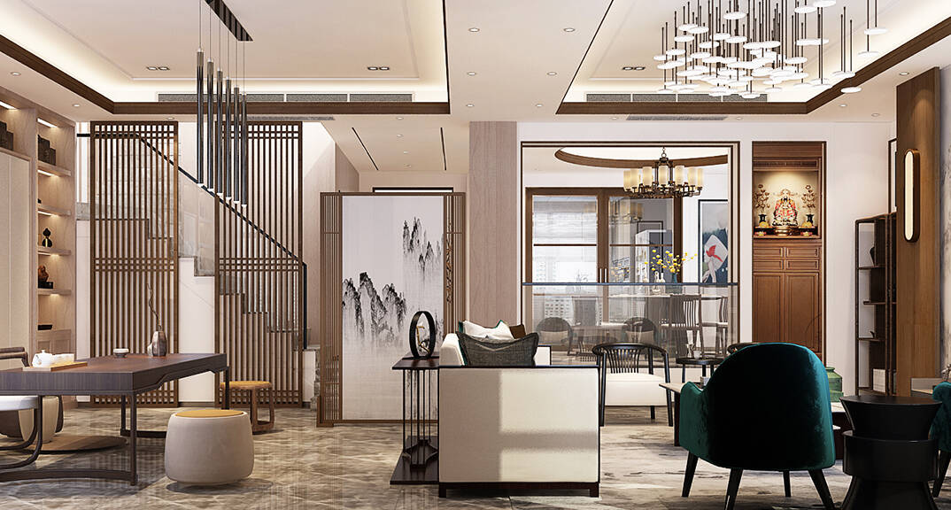 佳源都市600㎡別墅新中式風(fēng)格裝修案例效果圖