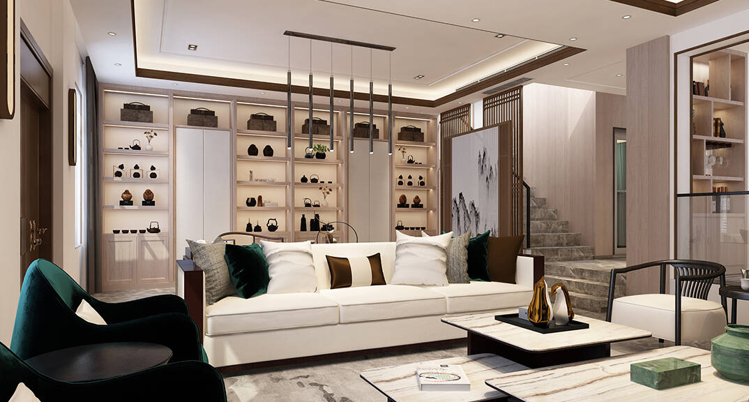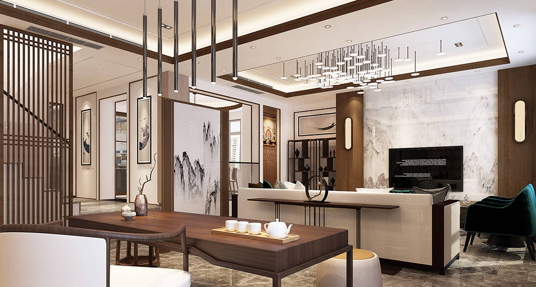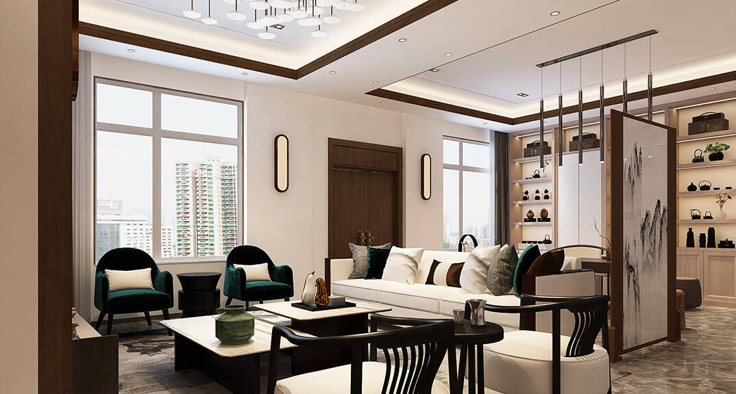 佳源都市600㎡別墅客廳茶室新中式風(fēng)格裝修效果圖
