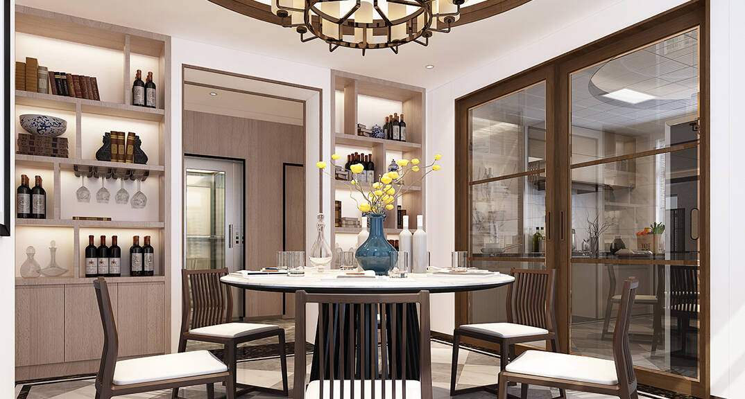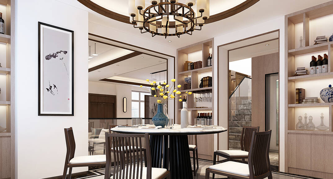 佳源都市600㎡別墅餐廳新中式風(fēng)格裝修效果圖
