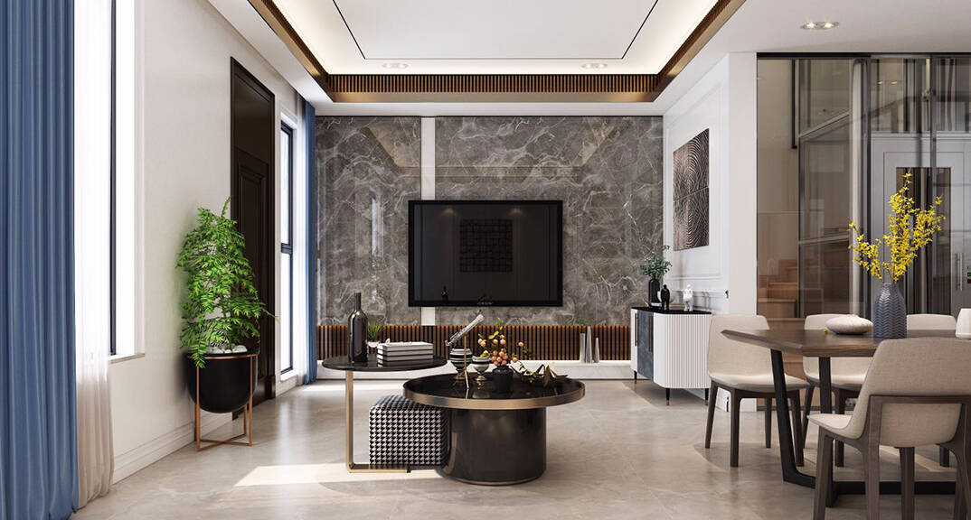 金茂墅180㎡別墅客廳餐廳現(xiàn)代風(fēng)格裝修效果圖