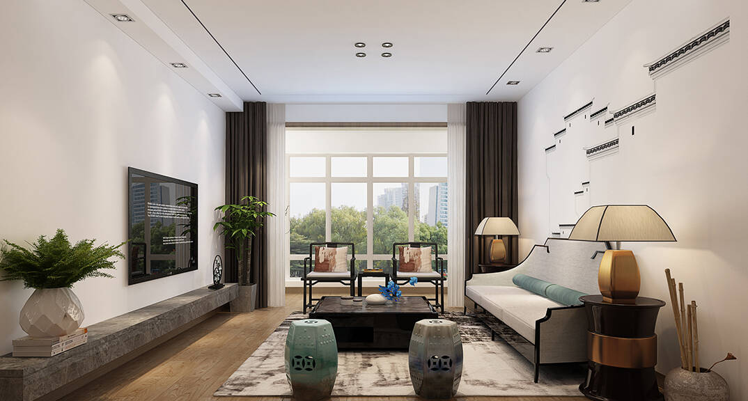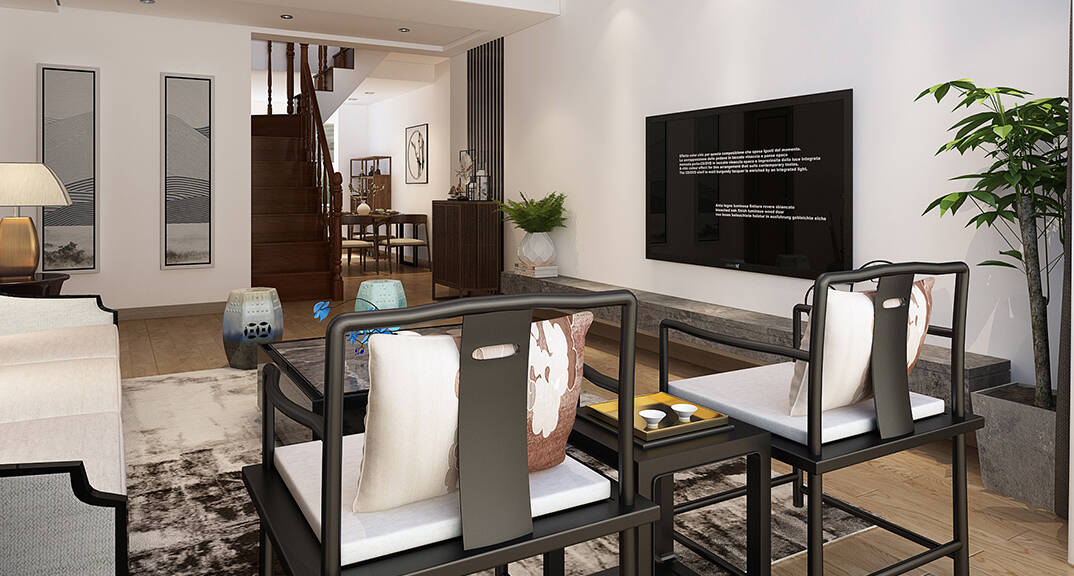 麗都國際310㎡別墅客廳現(xiàn)代中式風(fēng)格裝修案例效果圖