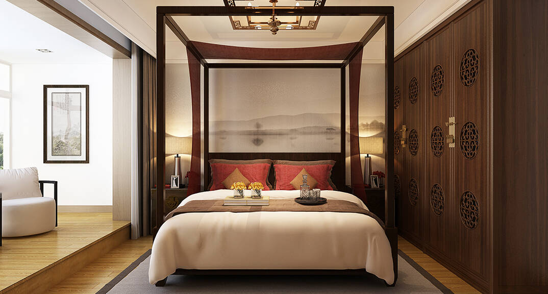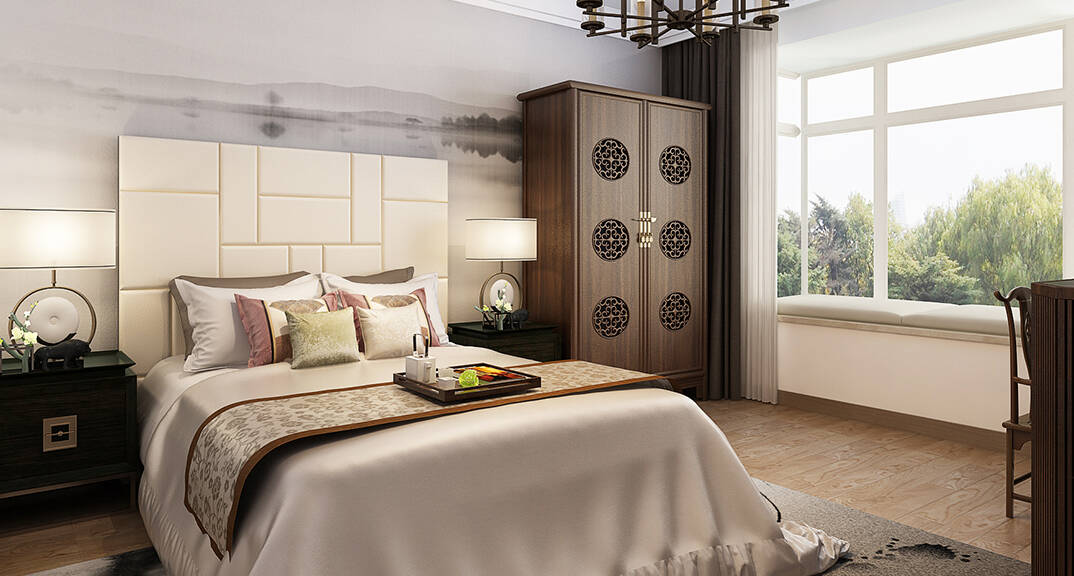 麗都國際310㎡別墅主臥現(xiàn)代中式風(fēng)格裝修案例效果圖