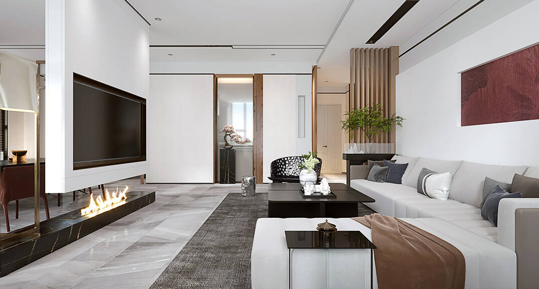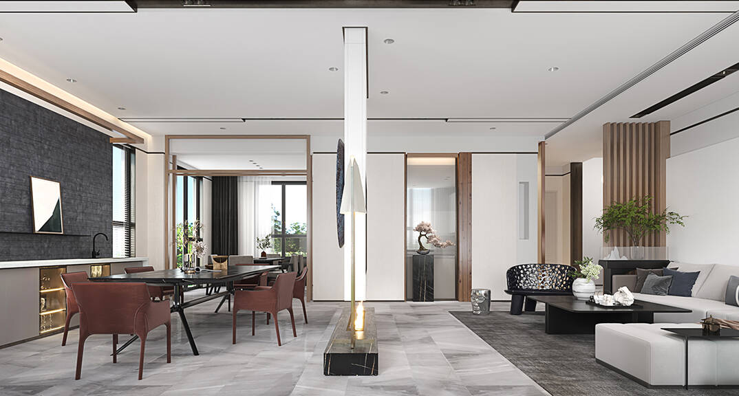 本案整體以現(xiàn)代中式風(fēng)格為主,既有現(xiàn)代風(fēng)格簡(jiǎn)約、明朗的線條,又有中國(guó)傳統(tǒng)內(nèi)涵與韻味。墻面大面積使用暖色烘托整體氛圍,融洽中式與現(xiàn)代簡(jiǎn)約兩種風(fēng)格??臻g更寬闊舒適玄關(guān)收納、玄關(guān)與干區(qū)相結(jié)合,既解放的外衛(wèi)的空間客廳電視背景是一面裝飾柜,豐富了空間,增加了收納和儲(chǔ)物,美觀又實(shí)用。