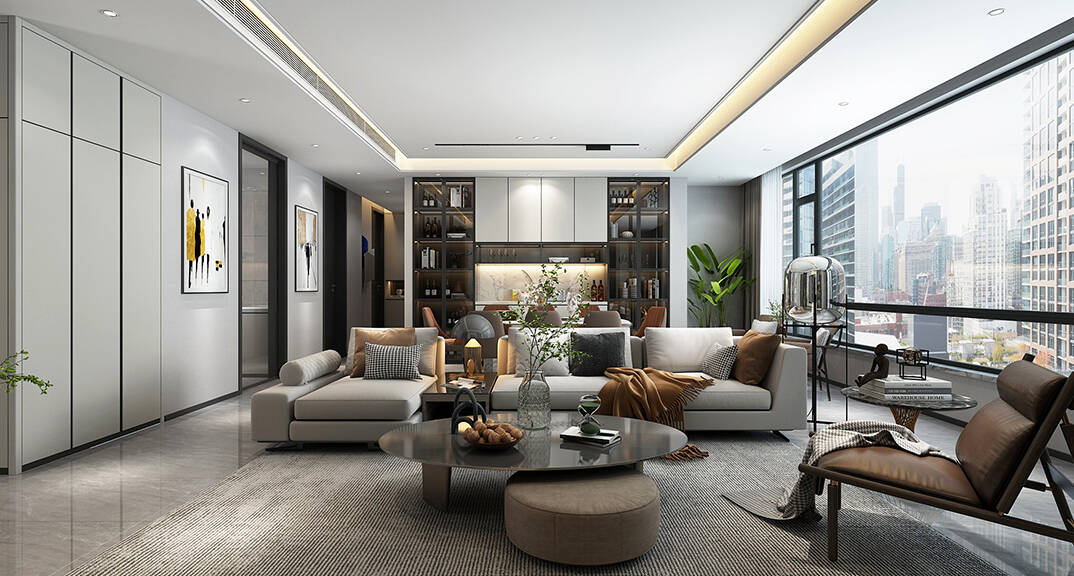 以簡潔、清晰和功能性為特征的室內(nèi)設(shè)計;它主要強調(diào)了空間的簡化和精煉,追求線條簡單、空間通透、色彩明亮、材質(zhì)自然等特點,注重形式與功能的結(jié)合。他們希望有一個時尚、現(xiàn)代的功能性空間,在整個空間的設(shè)計上用了暖灰調(diào)來與簡約的線條感來相呼應(yīng),能改造出一個通透、流暢的空間感。