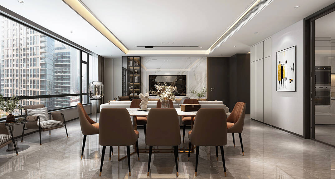 匯豪觀邸155m2輕奢風(fēng)格-客餐廳效果圖