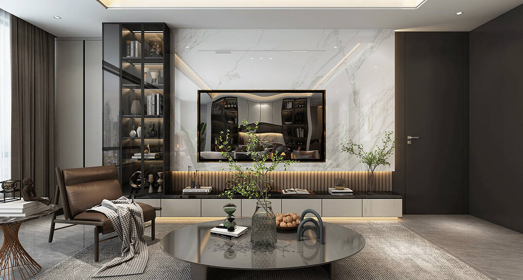 影都壹號127㎡三室兩廳意式輕奢風(fēng)格裝修案例效果圖