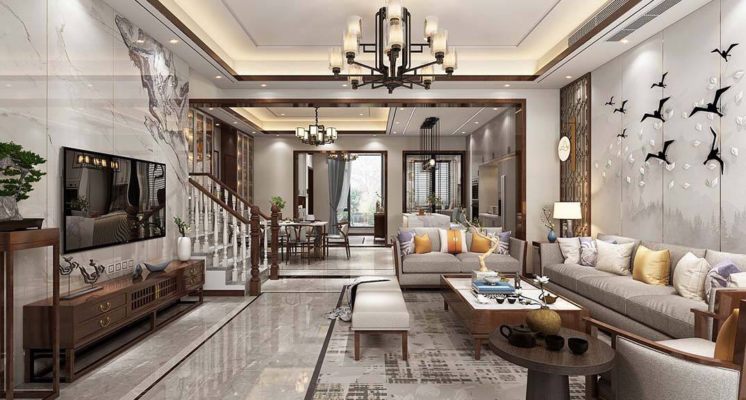 龍湖滟瀾海岸220m2新中式風(fēng)格裝修案例效果圖