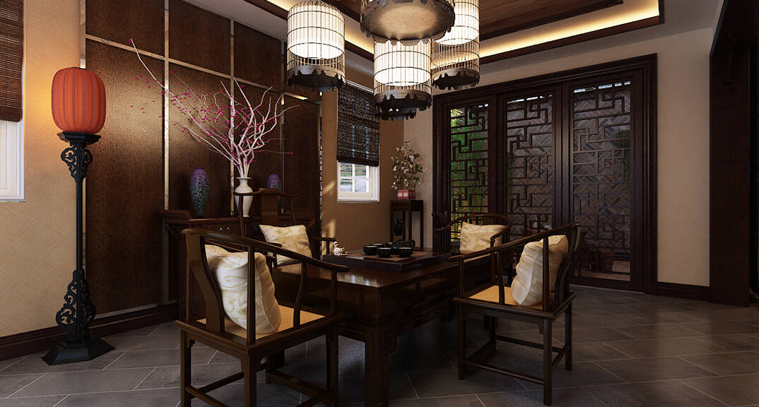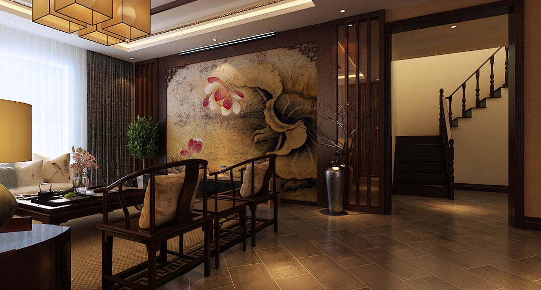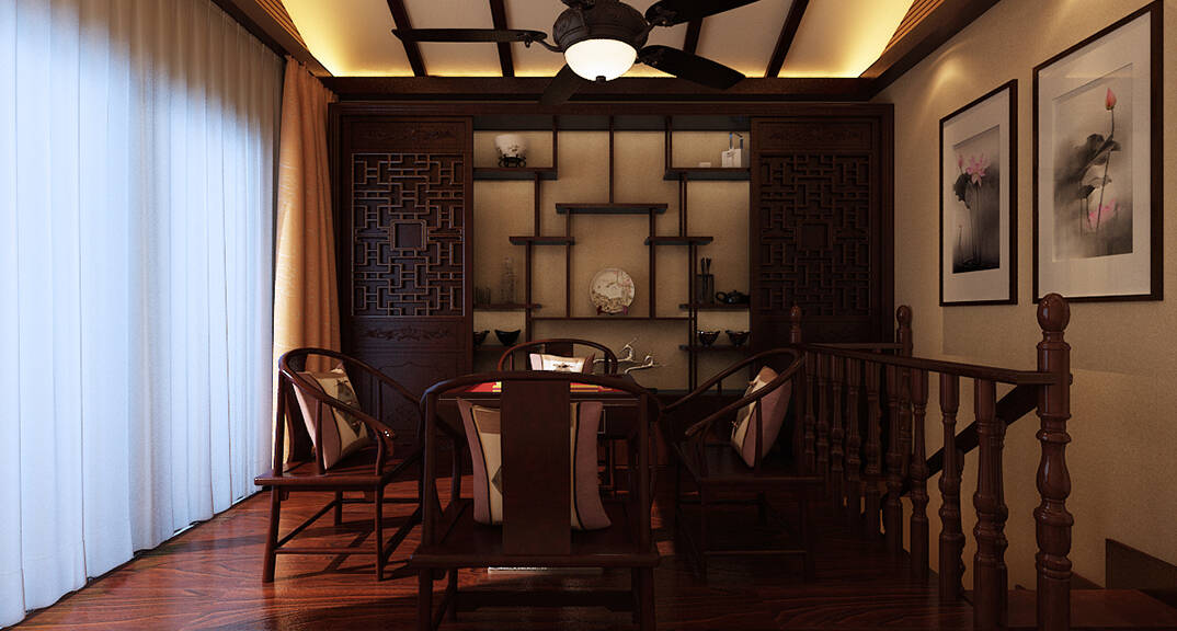 龍湖滟瀾海岸187㎡別墅中式風(fēng)格裝修案例效果圖