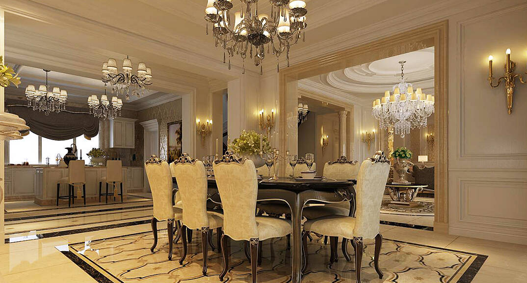 天逸海灣1800㎡別墅餐廳歐式風(fēng)格裝修效果圖