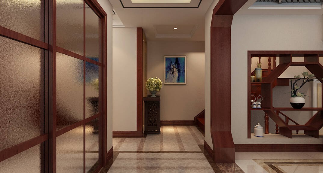 百通·香溪庭院180㎡別墅玄關(guān)中式風(fēng)格裝修案例效果圖