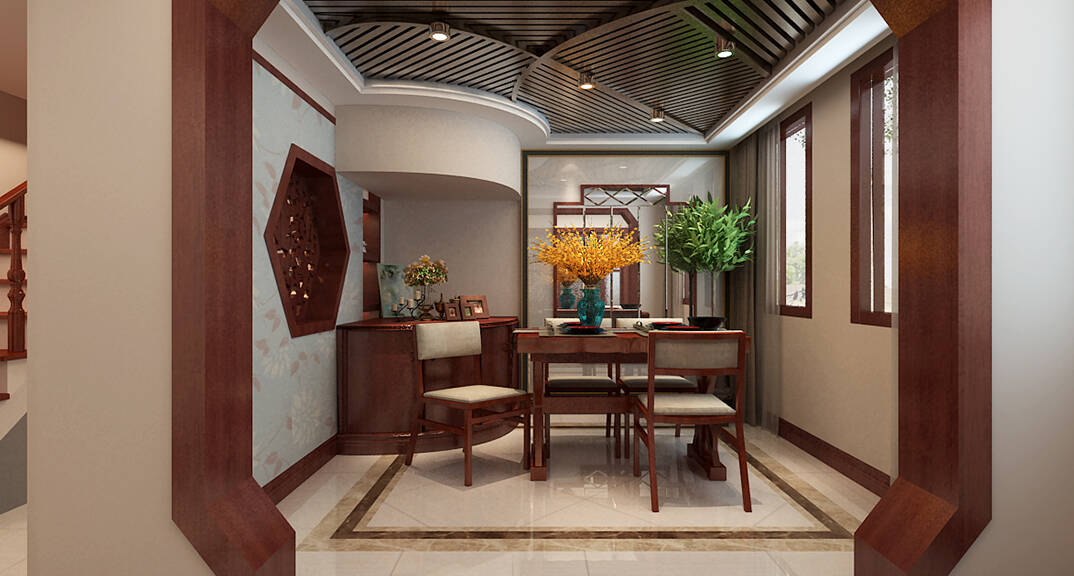 百通·香溪庭院180㎡別墅餐廳中式風(fēng)格裝修案例效果圖