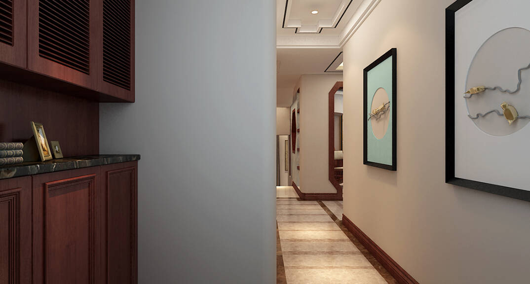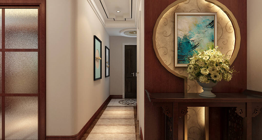 百通·香溪庭院180㎡別墅走廊中式風(fēng)格裝修案例效果圖