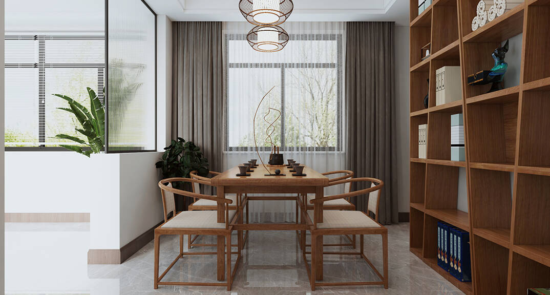 都市果嶺200m2新中式風(fēng)格裝修案例效果圖