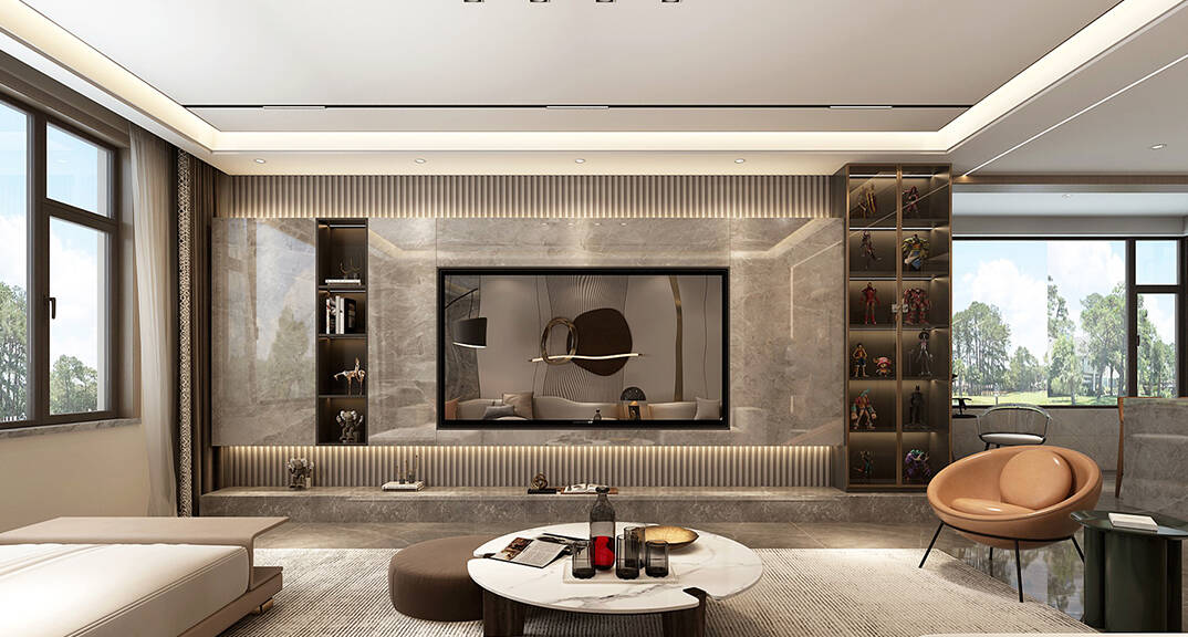 尚品江南譽園213平3室2廳現(xiàn)代風(fēng)格客廳電視裝修效果圖