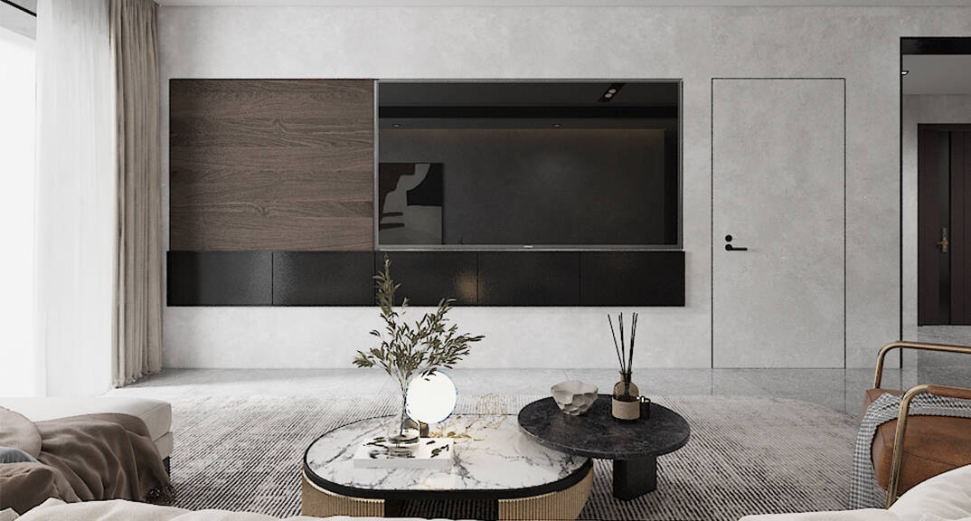 本案設(shè)計(jì)風(fēng)格為意式輕奢,拒絕了濃烈的色彩,以一種簡單、純粹的設(shè)計(jì)語言,回歸生活的本質(zhì),留存給居住者更多生活想象的空間。 整體空間灰橙色、駝色、與淺暖灰色調(diào)展現(xiàn)輕奢低調(diào)的高級質(zhì)感,簡約時(shí)尚的家具又增添了一份現(xiàn)代感,重新梳理了空間功能和尺寸,客廳陽臺一體化設(shè)計(jì),最大限度引入自然光,高級灰搭配中性色系木飾面,打造一個(gè)舒適的高品質(zhì)空間。在空間設(shè)計(jì)與色彩配搭上,精準(zhǔn)地把控節(jié)奏,用設(shè)計(jì)表達(dá)空間的包容性,更多的是通過人性化思考,創(chuàng)造一個(gè)功能性完整的舒適生活空間。大塊的木飾面、金屬元素和燈 光的碰撞搭配,凸顯出強(qiáng)大張力,共同打造出意式輕奢腔調(diào)十足的時(shí)尚與質(zhì)感。