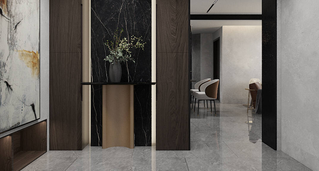海爾世紀(jì)公館150㎡平層走廊玄關(guān)現(xiàn)代極簡風(fēng)格裝修案例效果圖