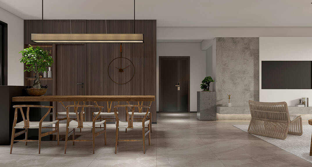 以簡潔、清晰和功能性為特征的室內(nèi)設(shè)計;它主要強調(diào)了空間的簡化和精煉,追求線條簡單、空間通透、色彩明亮、材質(zhì)自然等特點,注重形式與功能的結(jié)合。他們希望有一個時尚、現(xiàn)代的功能性空間,在整個空間的設(shè)計上用了暖灰調(diào)來與簡約的線條感來相呼應(yīng),能改造出一個通透、流暢的空間感。