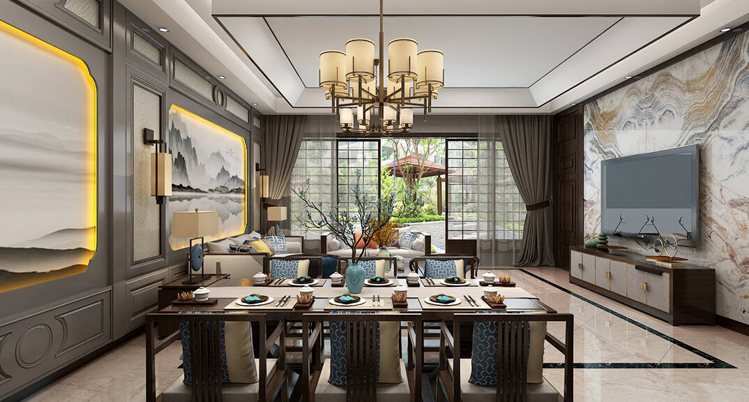 楓林小鎮(zhèn)160㎡聯(lián)排別墅新中式風(fēng)格裝修案例效果圖