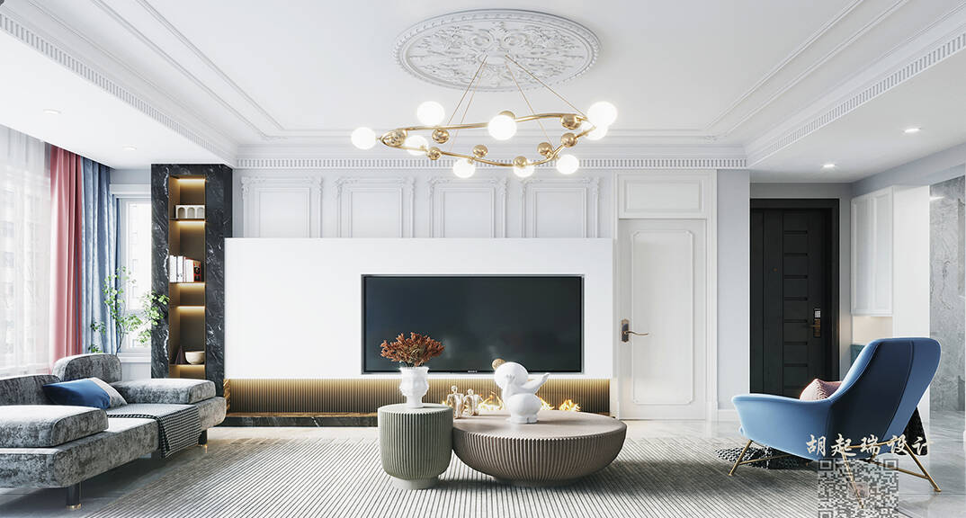 興業(yè)·凱萊花園180㎡四室二廳客廳電視法式輕奢風格裝修案例效果圖