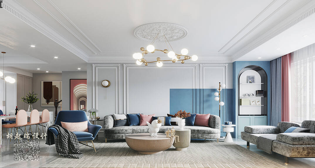 興業(yè)·凱萊花園180㎡四室二廳客廳沙發(fā)法式輕奢風格裝修案例效果圖