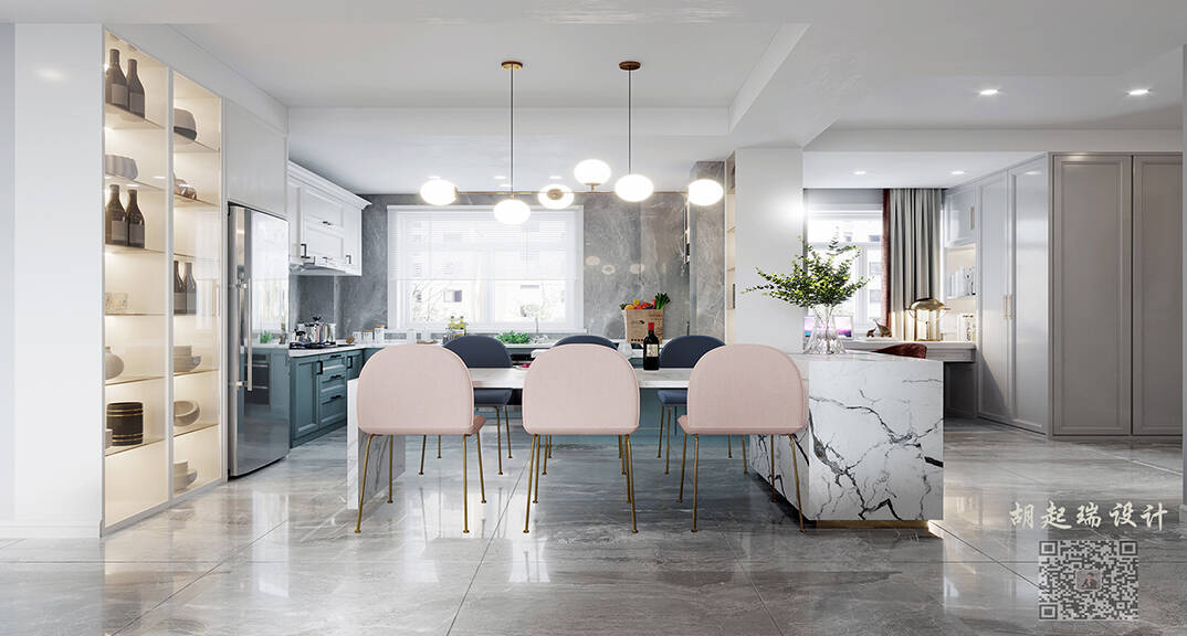 興業(yè)·凱萊花園180㎡四室二廳餐廳法式輕奢風格裝修案例效果圖