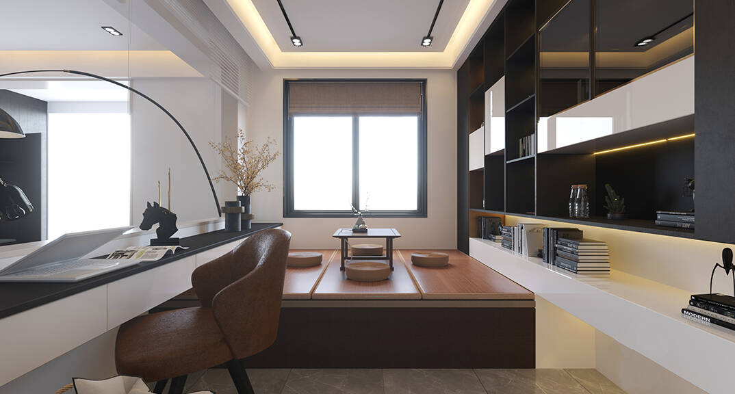 萊頓小鎮(zhèn)·海語(yǔ)墅250㎡別墅下疊二層書房現(xiàn)代簡(jiǎn)約風(fēng)格裝修案例效果圖