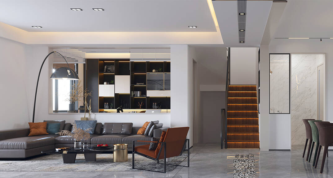 萊頓小鎮(zhèn)·海語(yǔ)墅250㎡別墅下疊一層客廳現(xiàn)代簡(jiǎn)約風(fēng)格裝修案例效果圖