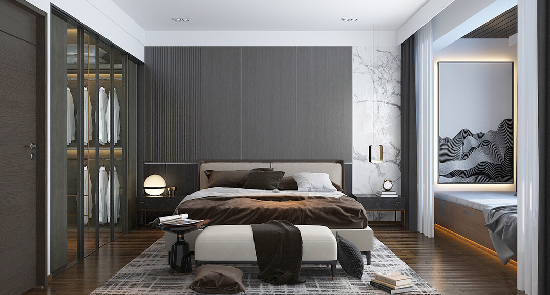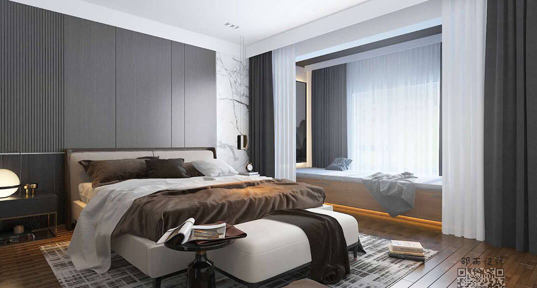 萊頓小鎮(zhèn)·海語(yǔ)墅250㎡別墅下疊二層主臥現(xiàn)代簡(jiǎn)約風(fēng)格裝修案例效果圖