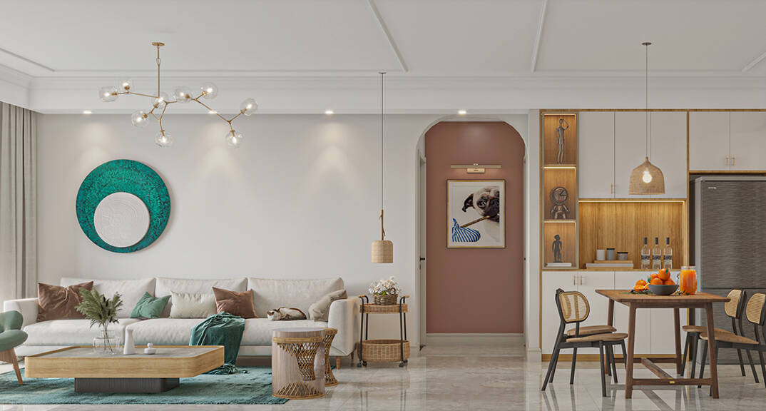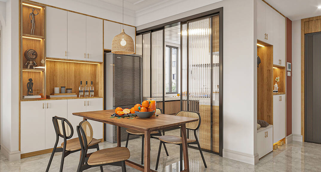 本案整體以現(xiàn)代中式風(fēng)格為主,既有現(xiàn)代風(fēng)格簡(jiǎn)約、明朗的線條,又有中國(guó)傳統(tǒng)內(nèi)涵與韻味。墻面大面積使用暖色烘托整體氛圍,融洽中式與現(xiàn)代簡(jiǎn)約兩種風(fēng)格??臻g更寬闊舒適玄關(guān)收納、玄關(guān)與干區(qū)相結(jié)合,既解放的外衛(wèi)的空間客廳電視背景是一面裝飾柜,豐富了空間,增加了收納和儲(chǔ)物,美觀又實(shí)用。