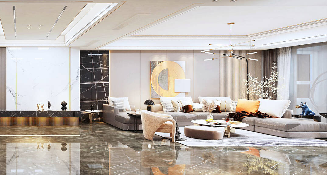 風(fēng)景水岸350㎡五室兩廳三衛(wèi)客廳沙發(fā)現(xiàn)代輕奢風(fēng)格裝修案例效果圖