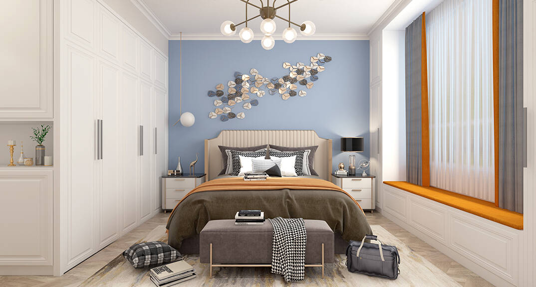 該項(xiàng)目位于港一區(qū),業(yè)主平時(shí)比較忙,想要家里簡單溫馨就好,整體顏色淺色系。喜歡藍(lán)色系的臥室讓人心情平靜,易于睡眠。家里家具以布藝家具為主,掛畫上選擇彩色系點(diǎn)綴。