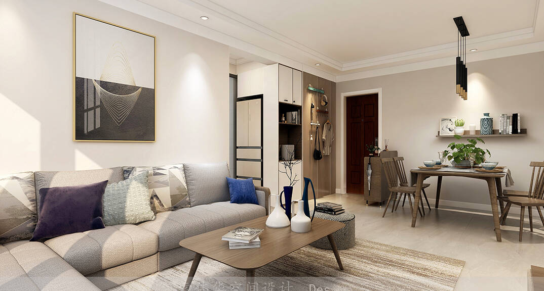 以簡潔、清晰和功能性為特征的室內(nèi)設(shè)計;它主要強(qiáng)調(diào)了空間的簡化和精煉,追求線條簡單、空間通透、色彩明亮、材質(zhì)自然等特點(diǎn),注重形式與功能的結(jié)合。他們希望有一個時尚、現(xiàn)代的功能性空間,在整個空間的設(shè)計上用了暖灰調(diào)來與簡約的線條感來相呼應(yīng),能改造出一個通透、流暢的空間感。