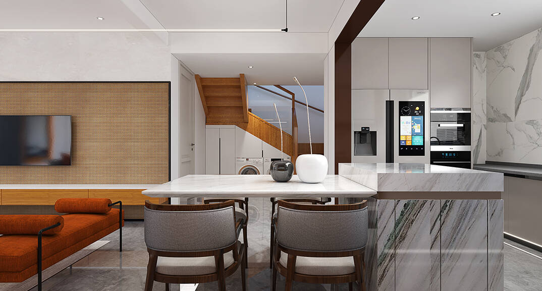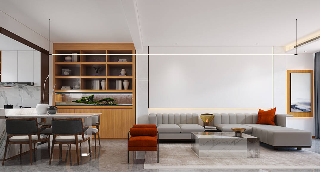以簡潔、清晰和功能性為特征的室內(nèi)設(shè)計;它主要強調(diào)了空間的簡化和精煉,追求線條簡單、空間通透、色彩明亮、材質(zhì)自然等特點,注重形式與功能的結(jié)合。他們希望有一個時尚、現(xiàn)代的功能性空間,在整個空間的設(shè)計上用了暖灰調(diào)來與簡約的線條感來相呼應(yīng),能改造出一個通透、流暢的空間感。