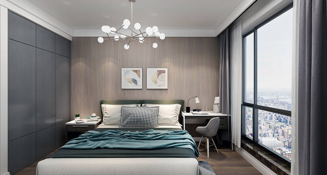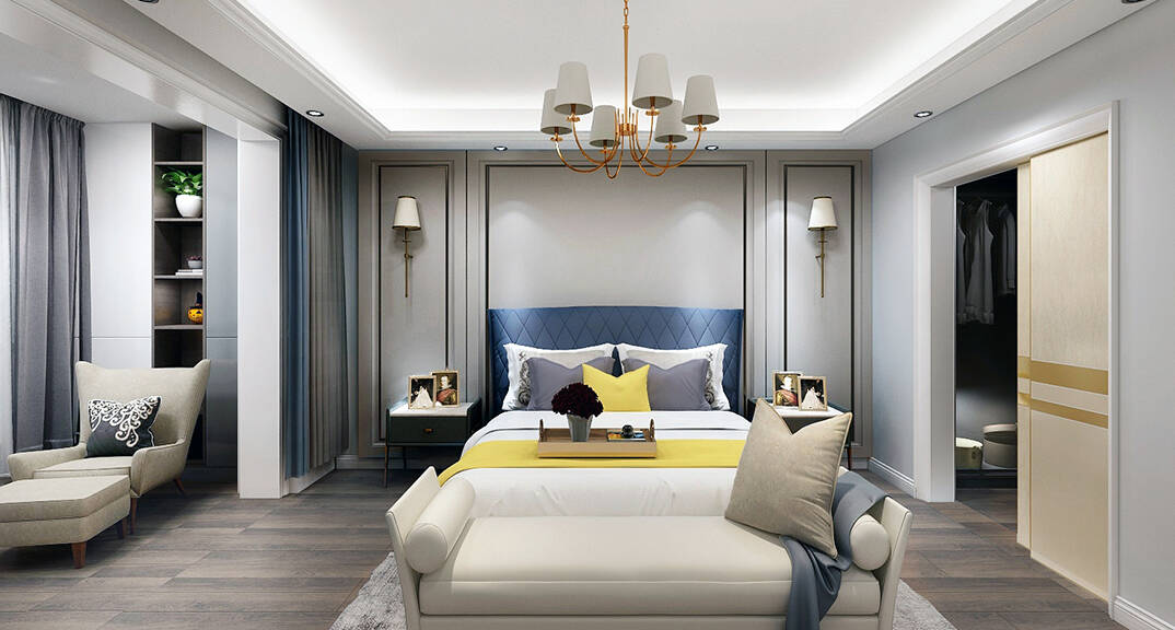 鑫江合院180㎡平層臥室輕奢風(fēng)格裝修案例效果圖