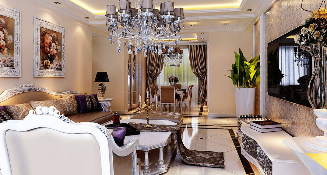 金鳳凰銘品 127㎡ 四室二廳一廚二衛(wèi) 歐式風(fēng)格客廳裝修效果圖