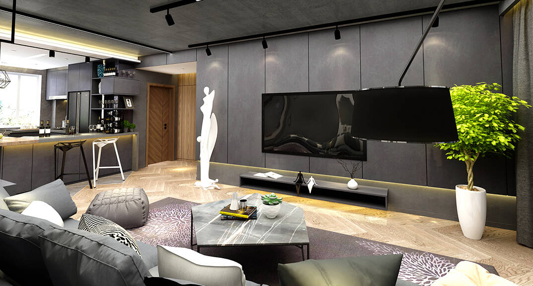 以簡(jiǎn)潔、清晰和功能性為特征的室內(nèi)設(shè)計(jì);它主要強(qiáng)調(diào)了空間的簡(jiǎn)化和精煉,追求線條簡(jiǎn)單、空間通透、色彩明亮、材質(zhì)自然等特點(diǎn),注重形式與功能的結(jié)合。他們希望有一個(gè)時(shí)尚、現(xiàn)代的功能性空間,在整個(gè)空間的設(shè)計(jì)上用了暖灰調(diào)來與簡(jiǎn)約的線條感來相呼應(yīng),能改造出一個(gè)通透、流暢的空間感。