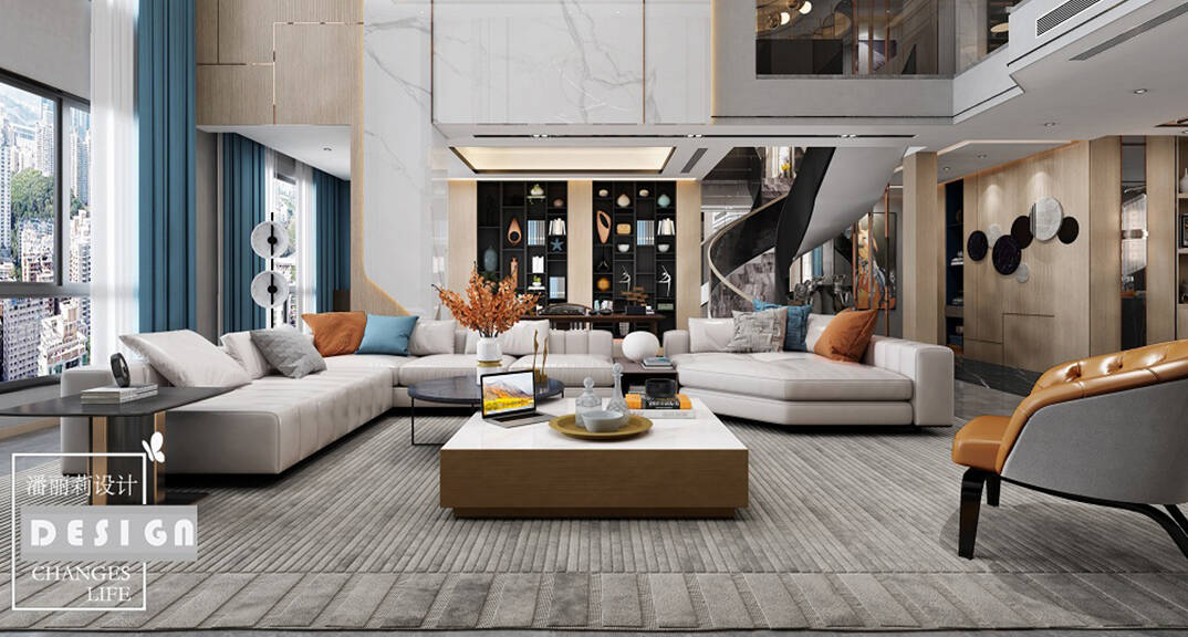 華旗綠城400m2輕奢風(fēng)格裝修案例效果圖