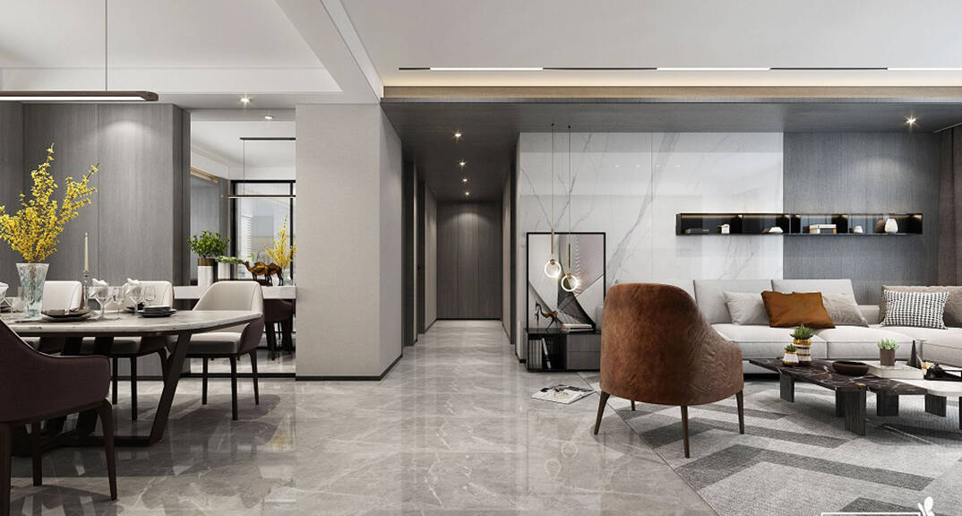 中海國際社區(qū)御城128㎡三室一廳客餐廳現(xiàn)代風格裝修案例效果圖