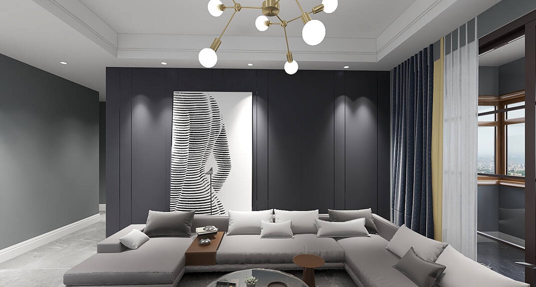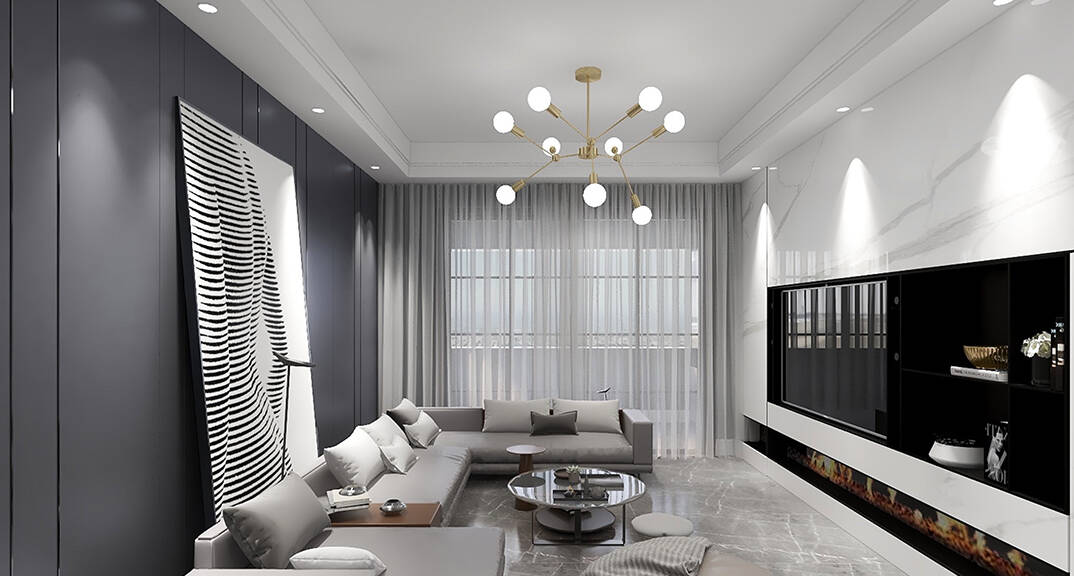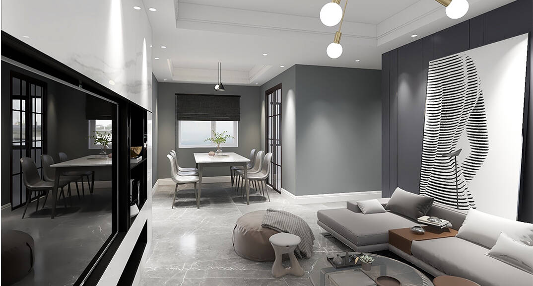 膠州機場公寓118㎡二室一廳客廳簡約風格裝修案例效果圖
