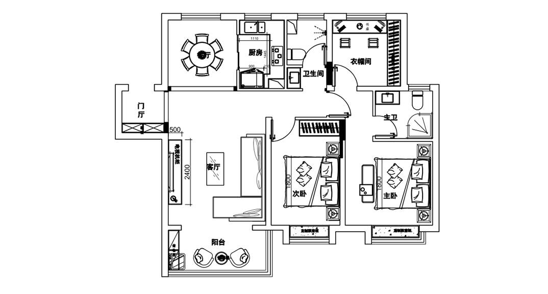 膠州機場公寓118㎡二室一廳簡約風格裝修案例設計圖